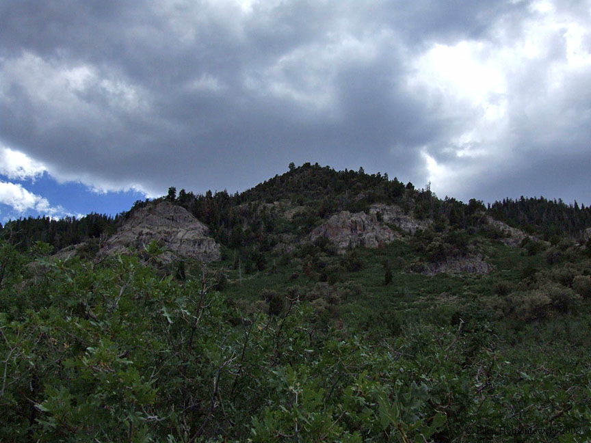 Looking up at the rugged high point, and